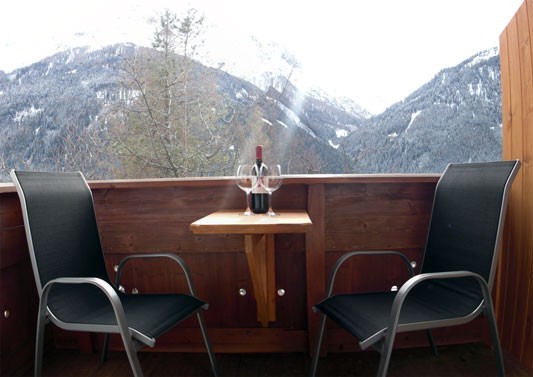 Weiters gibt es eine behagliche Wohnküche inklusive Essplatz, Dusche mit WC sowie Haartrockner und einen eigenen Balkon. Der Wohnbereich zeichnet sich unter anderem dadurch aus, dass das Sofa bei Bedarf als drittes Bett genutzt werden kann.