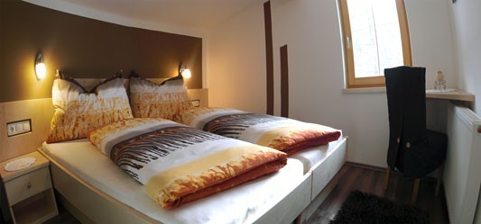 In dieser gemütlichen Ferienwohnung finden zwei bis drei Personen genügend Platz, um bei Familie Tilg einen individuellen Urlaub nach Wunsch und nach Maß zu verleben. Das Schlafzimmer bietet unseren Gästen die praktische Möglichkeit von getrennten Betten.
